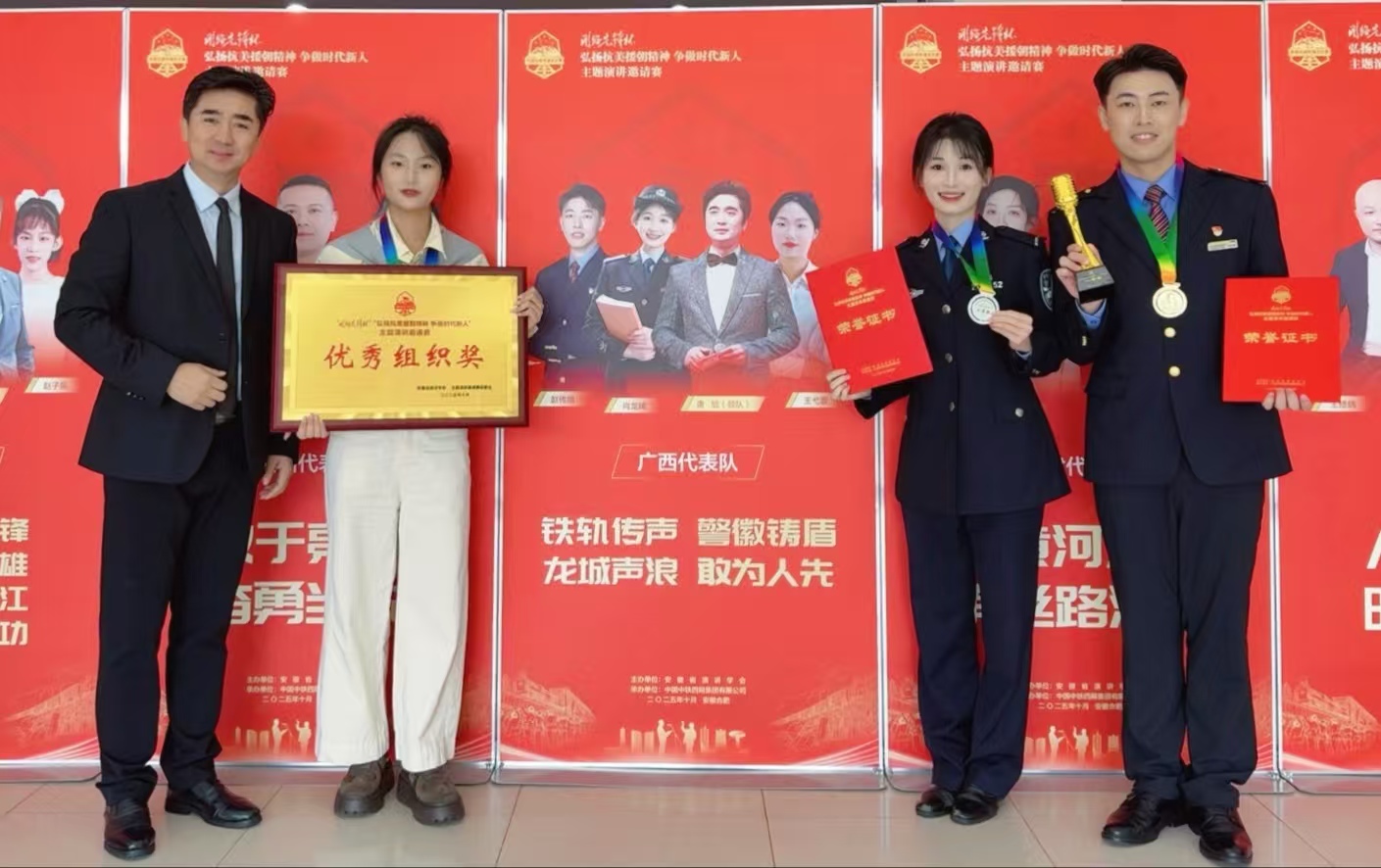 此次赛事不仅是演讲技艺的比拼,更是一次跨越75年的历史回响与时代精神的深刻对话。在命题演讲环节,选手们引经据典,深情回溯抗美援朝战场上的英雄壮举;在紧张刺激的150秒即兴演讲中,他们才思泉涌,金句频出,展现了新时代青年出色的应变能力与深厚的家国情怀,正如选手所言:“我们站立的地方就是中国,我们的样子就是新时代的样子!柳州市文联荣获大赛 “优秀组织奖” ,体现了主办方对柳州组织与筹备工作的高度认可。中国铁路南宁局集团有限公司柳州工务机械段职工赵传旭,以作品《我是一个兵》斩获大赛一等奖 。他那“军装是国防绿,制服是铁路蓝。我永远是为国保驾护航的兵”的铿锵誓言,展现了新时代产业工人的忠诚与担当。