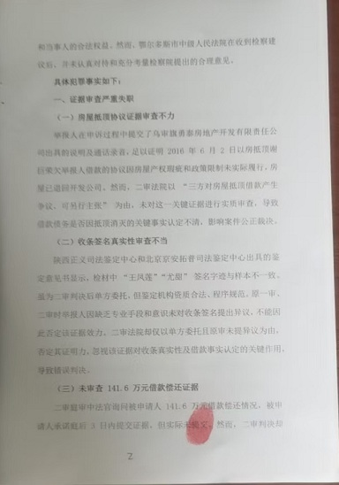 举报人在申诉过程中提交了乌审旗勇泰房地产开发有限责任公司出具的说明及通话录音,足以证明 2016 年 6 月 2 日以房抵顶谢巨荣欠举报人借款的协议因房屋产权瑕疵和政策限制未实际履行,房屋已退回开发公司。然而,二审法院以 “三方对房屋抵顶借款产生争议,可另行主张” 为由,未对这一关键证据进行实质审查,导致借款债务是否因抵顶消灭的关键事实认定不清,影响案件公正裁决。
