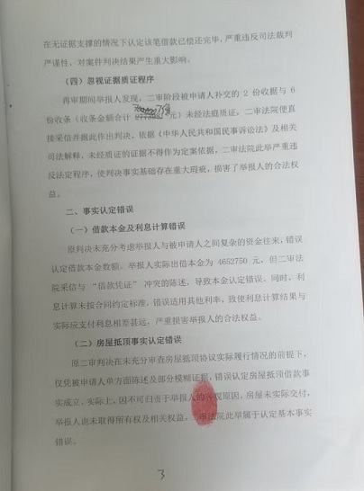 在借款本金、利息及房屋抵顶等关键事实认定上,原判决举证责任分配明显不当。举报人已提供部分转账记录、借款合同等证据,被申请人提出异议后,二审法院未合理要求被申请人提供反驳证据,反而过度加重举报人的举证责任,导致案件事实未能准确查明。在房屋抵顶问题上,举报人提供初步证据证明未实际履行后,二审法院未要求被申请人进一步举证证明协议有效性及履行情况,错误将举证不能后果强加给举报人,违反民事诉讼法举证责任分配原则。